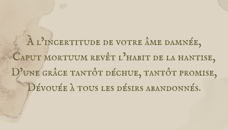 Écriture du poème Vertus et Infortunes d'après le quadryptique de l'exposition et en hommage à sa couleur principale Caput Mortuum.